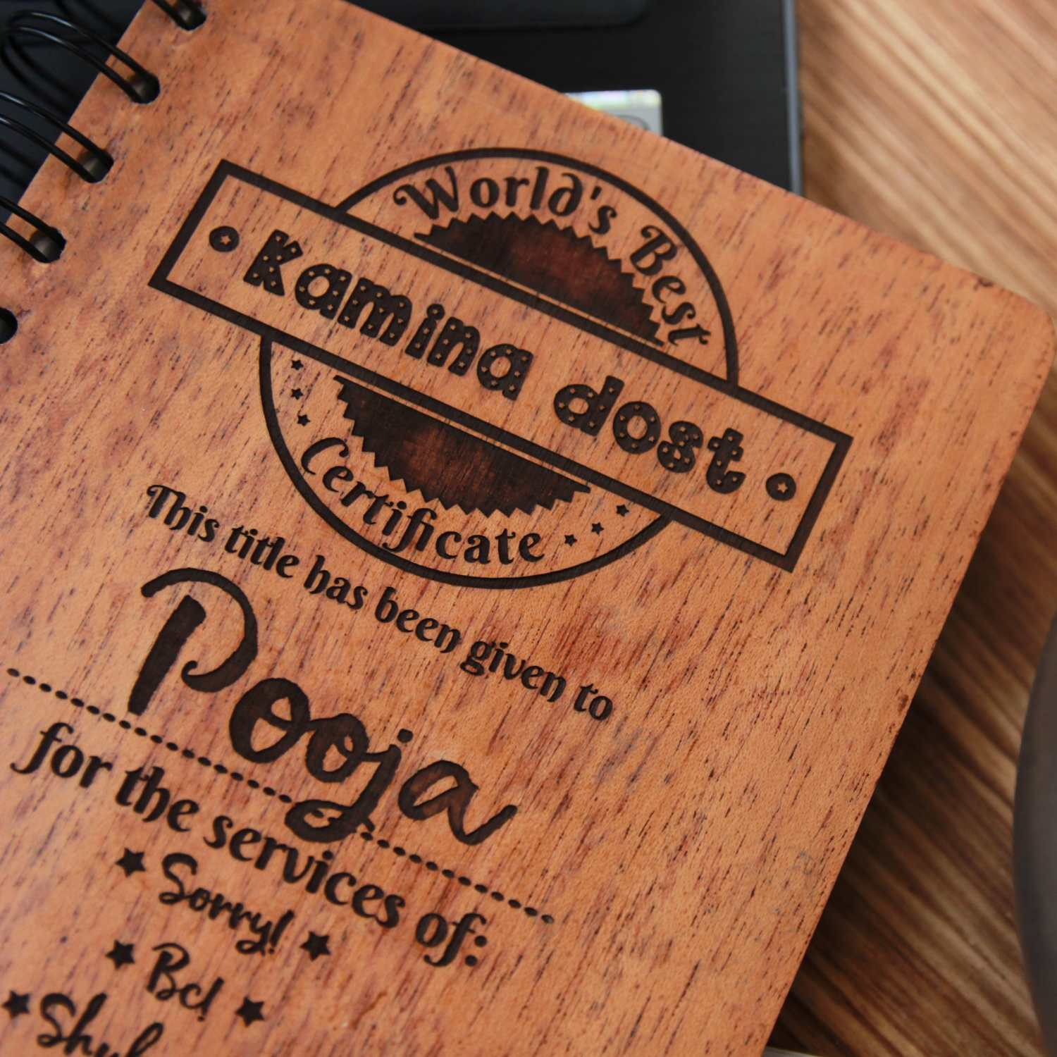Celebrate the Kamina Dost as they're the goofy ones, the ones who do the strangest things to embarrass you in public. They're always the ones who come up with the weirdest ideas and force you to go along with them. They crack the worst jokes at the most inappropriate times and say the most nonsensical things out of the blue. But you love them anyway. A funny gift for the weirdo of your group. Let your bestie know that they will be your best friend forever. What better way to say it than engrave this promise of friendship on a wooden notebook.