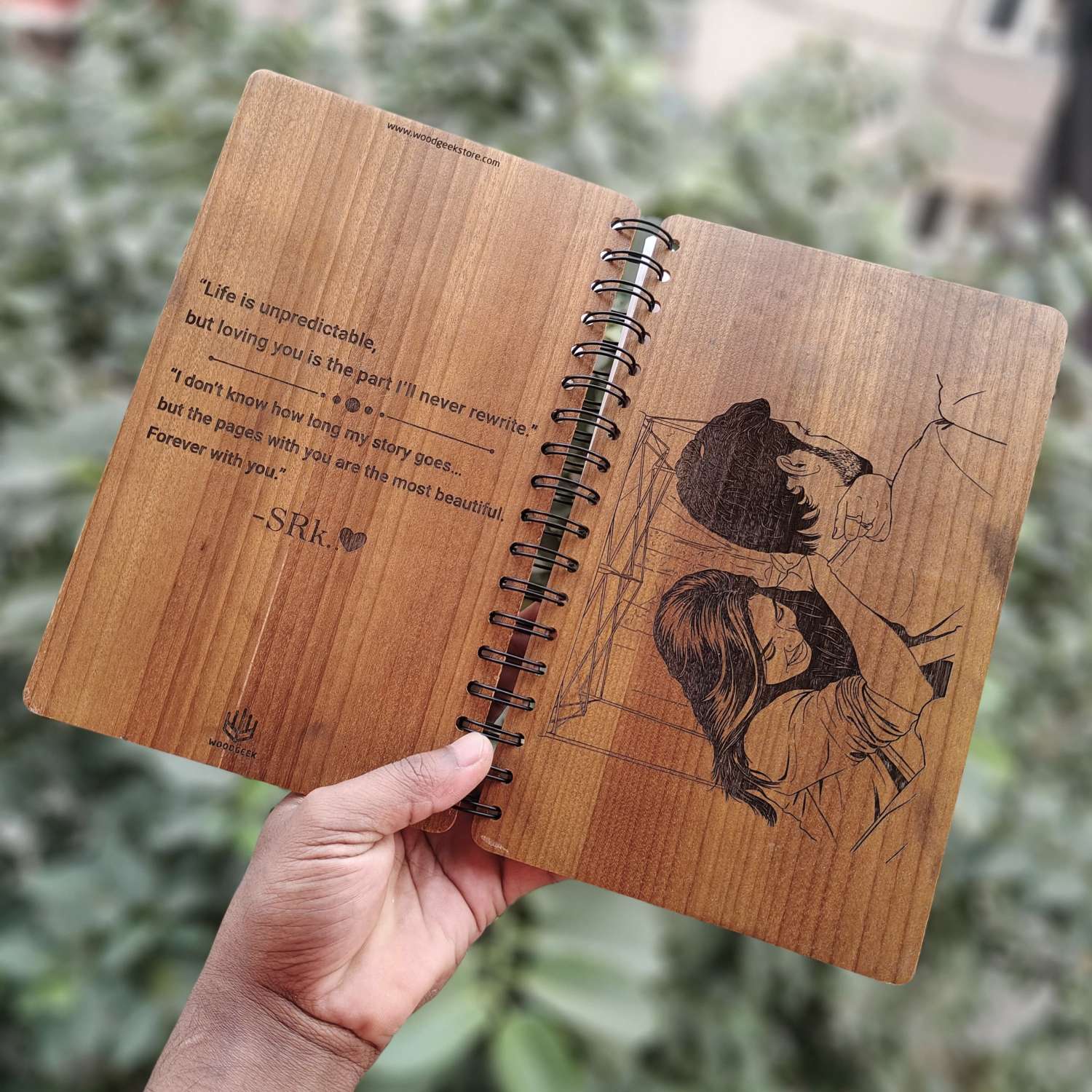 Customise your wooden notebook with your own message, favourite quote or picture. Carve your photo, add a happy birthday message or wish your parents a happy anniversary with our wooden notebook.