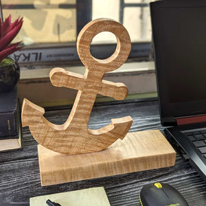 This is not a flat cutout; the anchor is a solid, three-dimensional sculpture, carved with depth and precision. The clean, smooth grain of the Maple wood gives it a modern, nautical feel. It makes a beautiful Personalized Table Top Gift for a sailor, a traveler, or anyone who serves as the "anchor" in your life. It's a striking piece of Custom Desk Decor that stands around 8 inches tall (or specify your size).