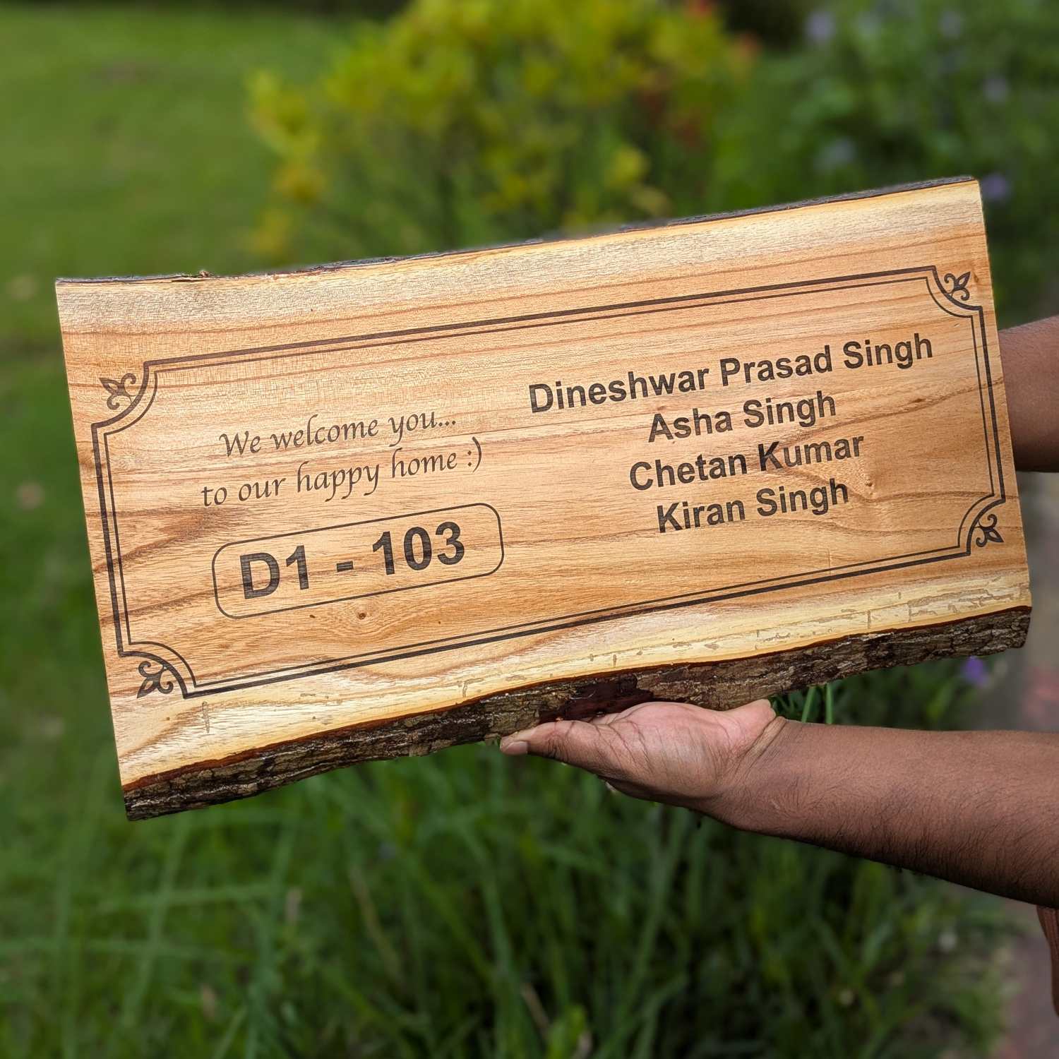 Personalize your sign with custom engraving of logos, text, or photos. We offer 2 standard sizes - 12x8 inch & 18x8 inch in thickness of approximately 25 mm. Custom sizes are available on request. Upload your logo/photo and text while placing your order or WhatsApp us at +916289495478, and we will send you a design preview.