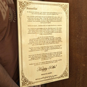 No two couples have the same "inner circle" language, so we don’t use templates. Our workshop team creates a completely custom design layout for every order, ensuring your names, signatures, and specific list of promises are balanced and professional. We offer a range of sizes—from a compact 9 x 6 inch desk piece to a massive 24 x 16 inch statement board—and since everything happens in-house, we can even customize the size and shape of the wood to fit your specific vision.