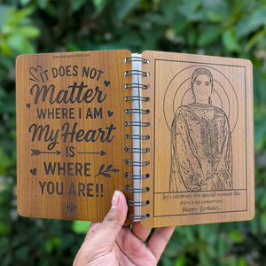 We all have that one person who makes the rest of the world feel like background noise. The quote on this cover—"It does not matter where I am, my heart is where you are"—isn't just a romantic line; it’s a promise. We built this Personalized Wooden Birthday Journal in our Woodgeek workshop for those who know that real connection doesn't depend on a GPS location. It’s a physical, grounded gift for the person who is your safe space.